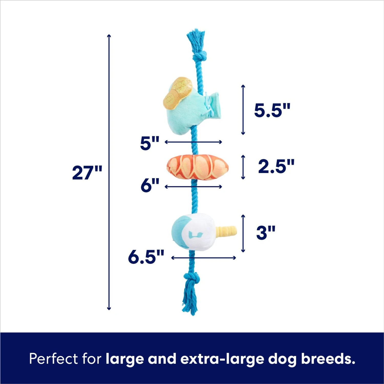 - From Frisco by Chewy. This Hanukkah plush rope toy is the perfect holiday gift for your furry friend to enjoy all season long.